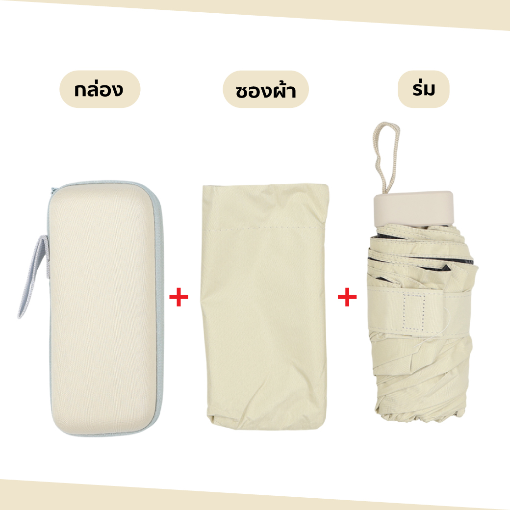 ร่มพับ 5 ตอนขนาด 21 นิ้ว (สีครีม-ด้ามเหลี่ยม)